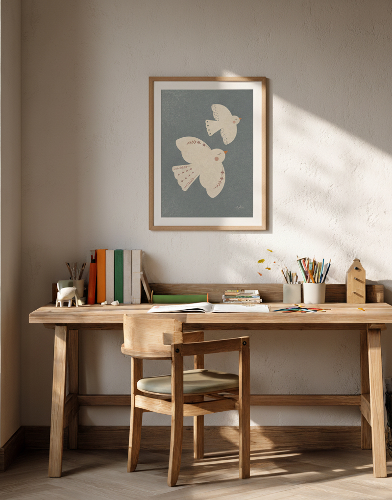 La lámina Pigeon es esa pieza que demuestra que la belleza está en la sencillez. Una ilustración delicada, minimalista y con una armonía cromática que invita a la calma y a la tranquilidad. Esta lámina realmente funciona en cualquier espacio del hogar.